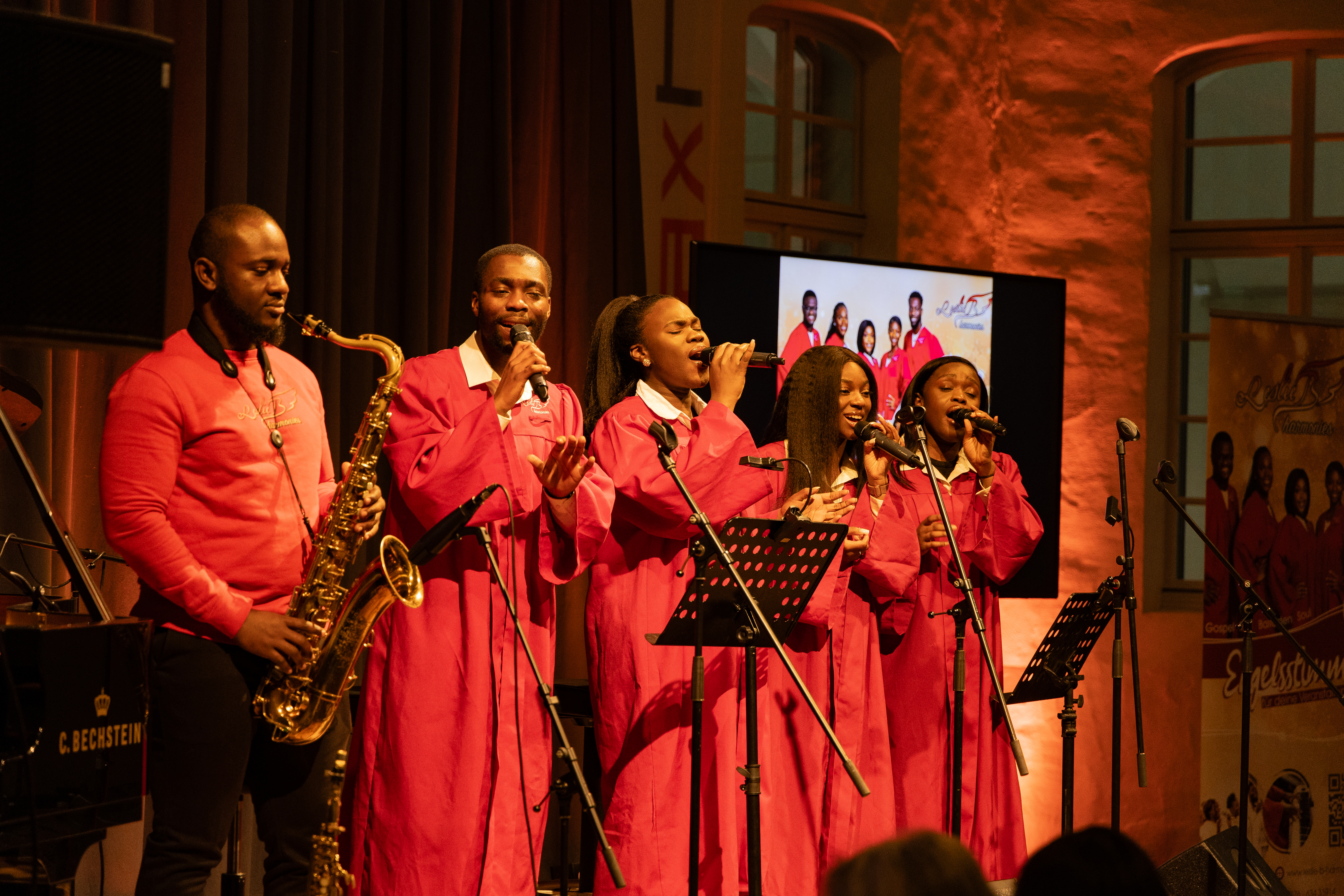 Die jungen, modernen Gospelsänger Leslie, Emmanuel, Rahel und Desirey, entwickelten sich zum zum bekanntesten Gospelchor Deutschlands. Am Piano werden sie von Evans begleitet. Trotz ihrer noch jungen Karriere konnten sie bereits umfangreiche Erfahrungen in TV-Shows – darunter “All together now“ (SAT1), “Music Drive in“ (RTL2) und "The Voice of Germany 2023" (PRO7 und SAT1) – auf zahlreichen öffentlichen Auftritten sowie bei privaten Veranstaltungen sammeln. Freuen Sie sich auf Gospel, Soul und Balladen, die vom Chor auf eine unnachahmlich schöne Art und Weise in 3-stimmiger Harmonie interpretiert werden.