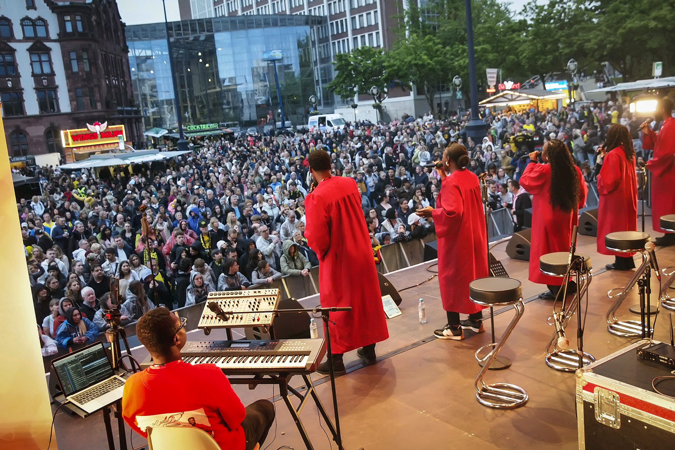 Die jungen, modernen Gospelsänger Leslie, Emmanuel, Rahel und Desirey, entwickelten sich zum zum bekanntesten Gospelchor Deutschlands. Am Piano werden sie von Evans begleitet. Trotz ihrer noch jungen Karriere konnten sie bereits umfangreiche Erfahrungen in TV-Shows – darunter “All together now“ (SAT1), “Music Drive in“ (RTL2) und "The Voice of Germany 2023" (PRO7 und SAT1) – auf zahlreichen öffentlichen Auftritten sowie bei privaten Veranstaltungen sammeln. Freuen Sie sich auf Gospel, Soul und Balladen, die vom Chor auf eine unnachahmlich schöne Art und Weise in 3-stimmiger Harmonie interpretiert werden.